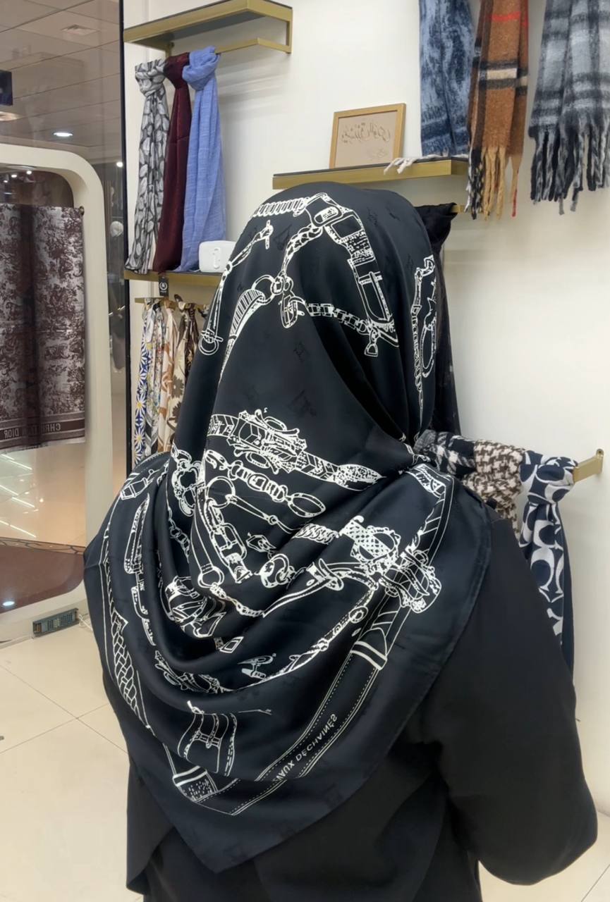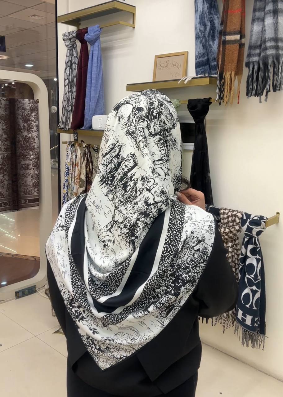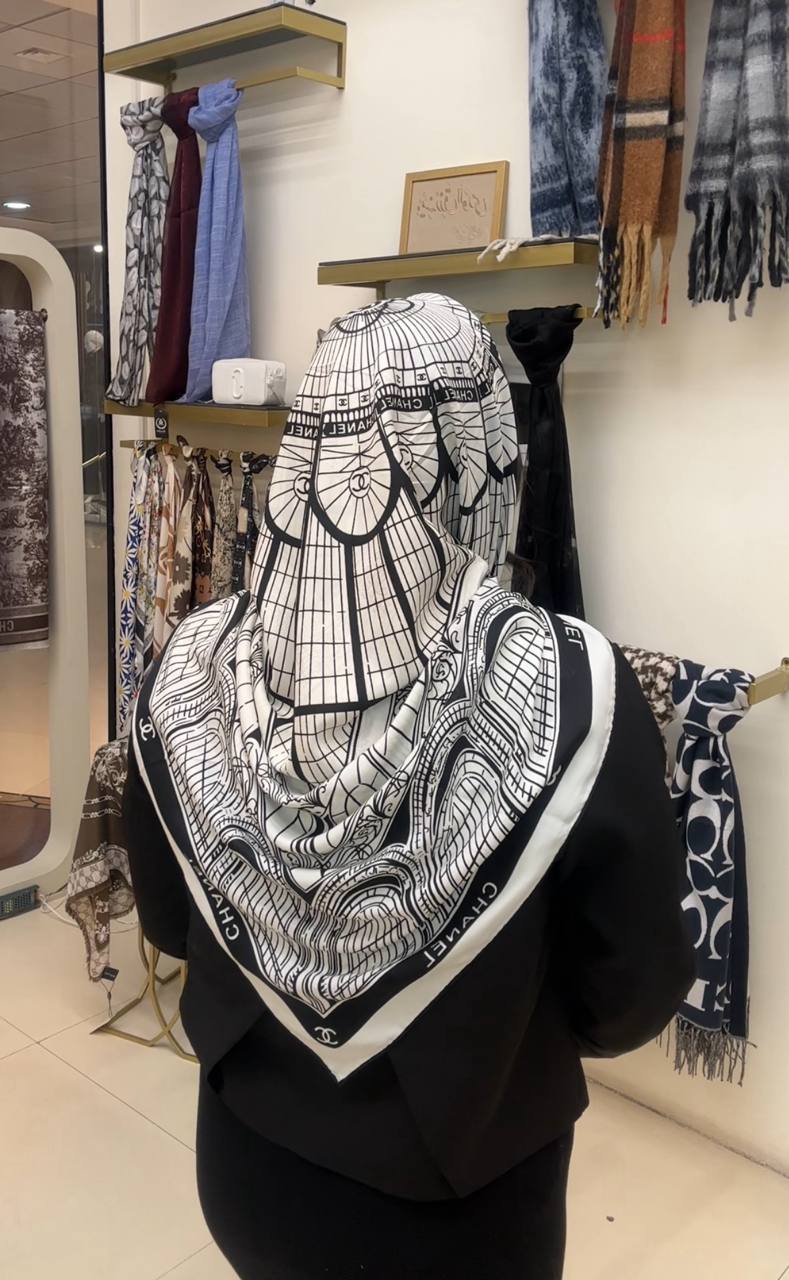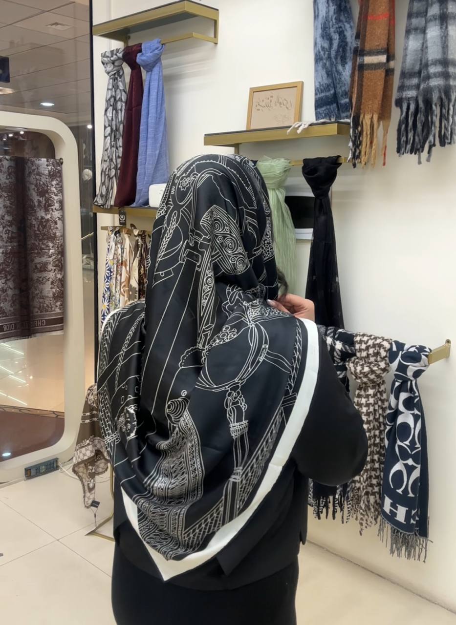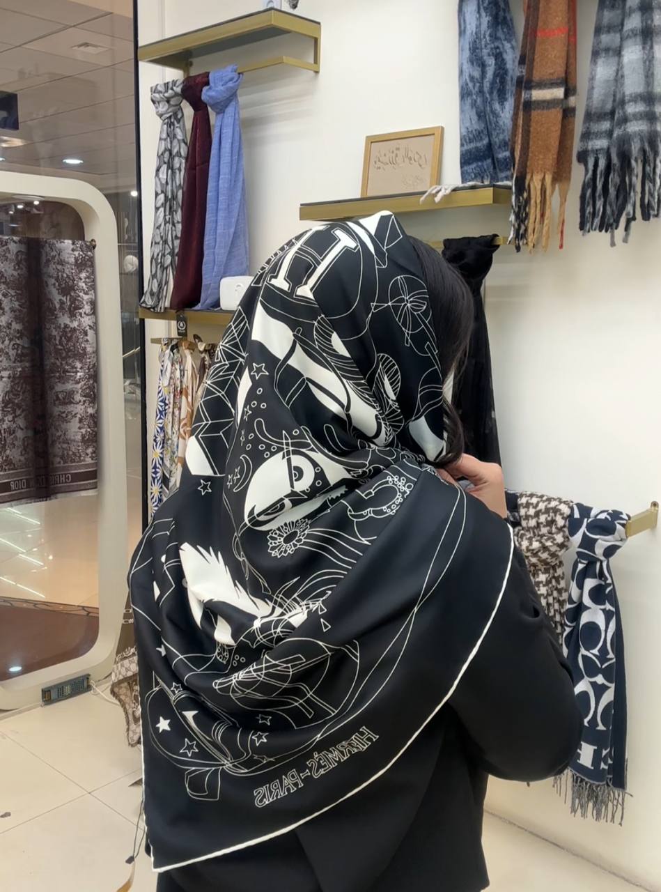 روسری ابریشم ژاکارد سایزه 140 در 140 طرح سفید مشکی