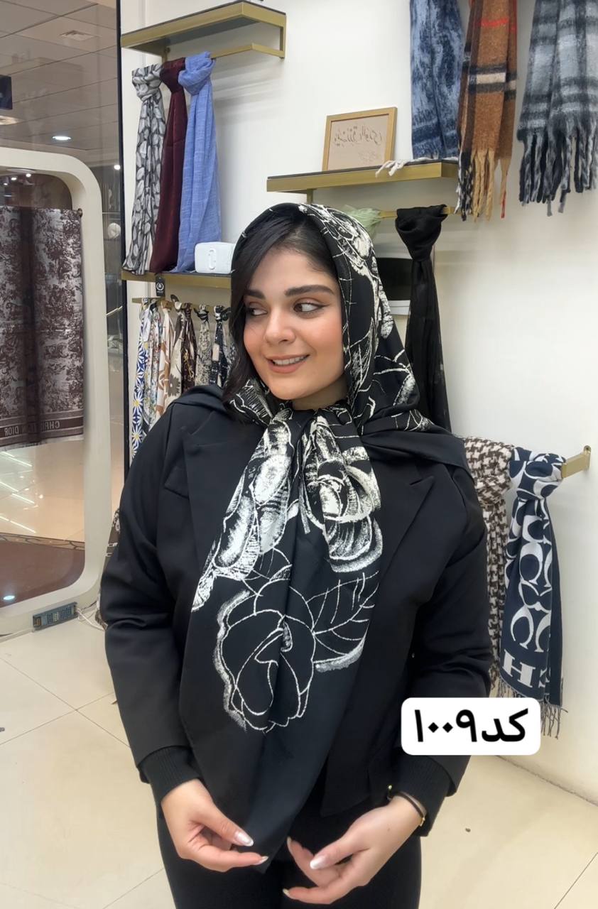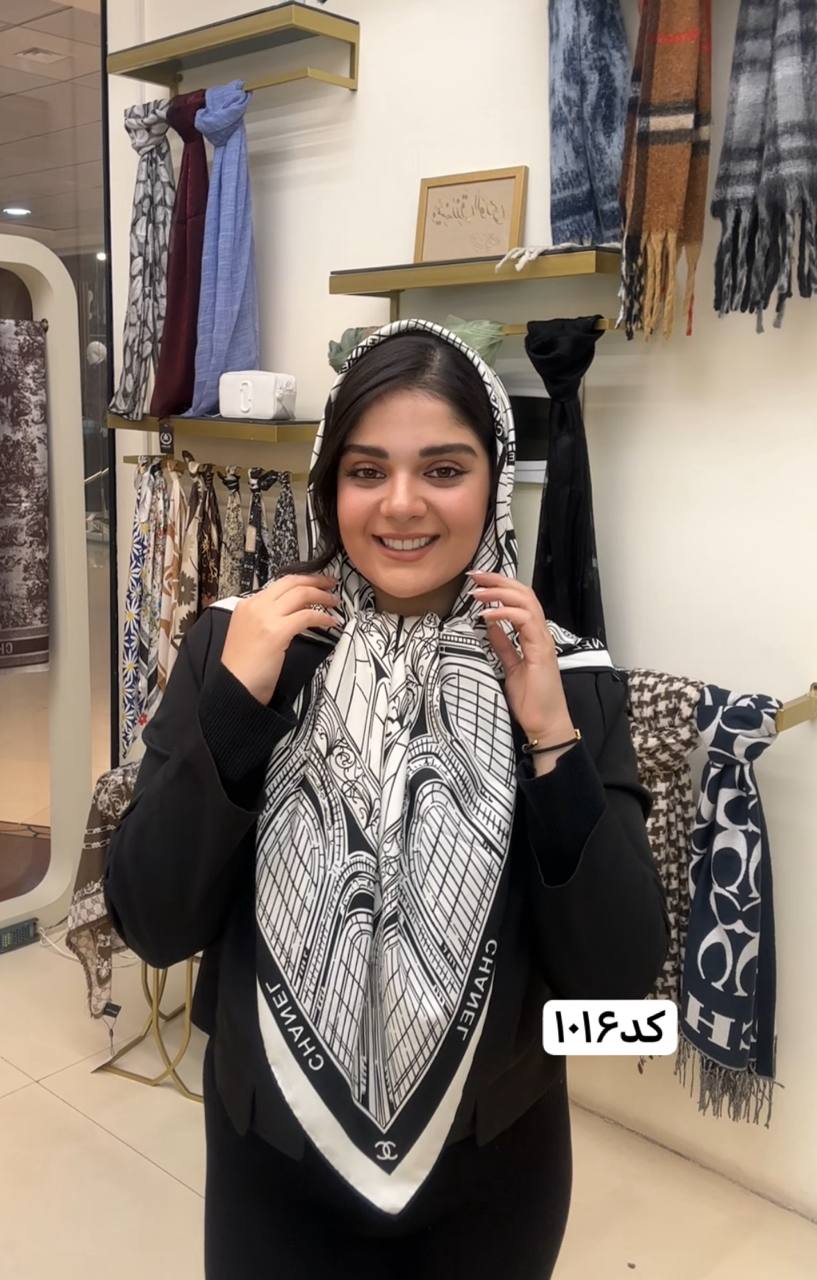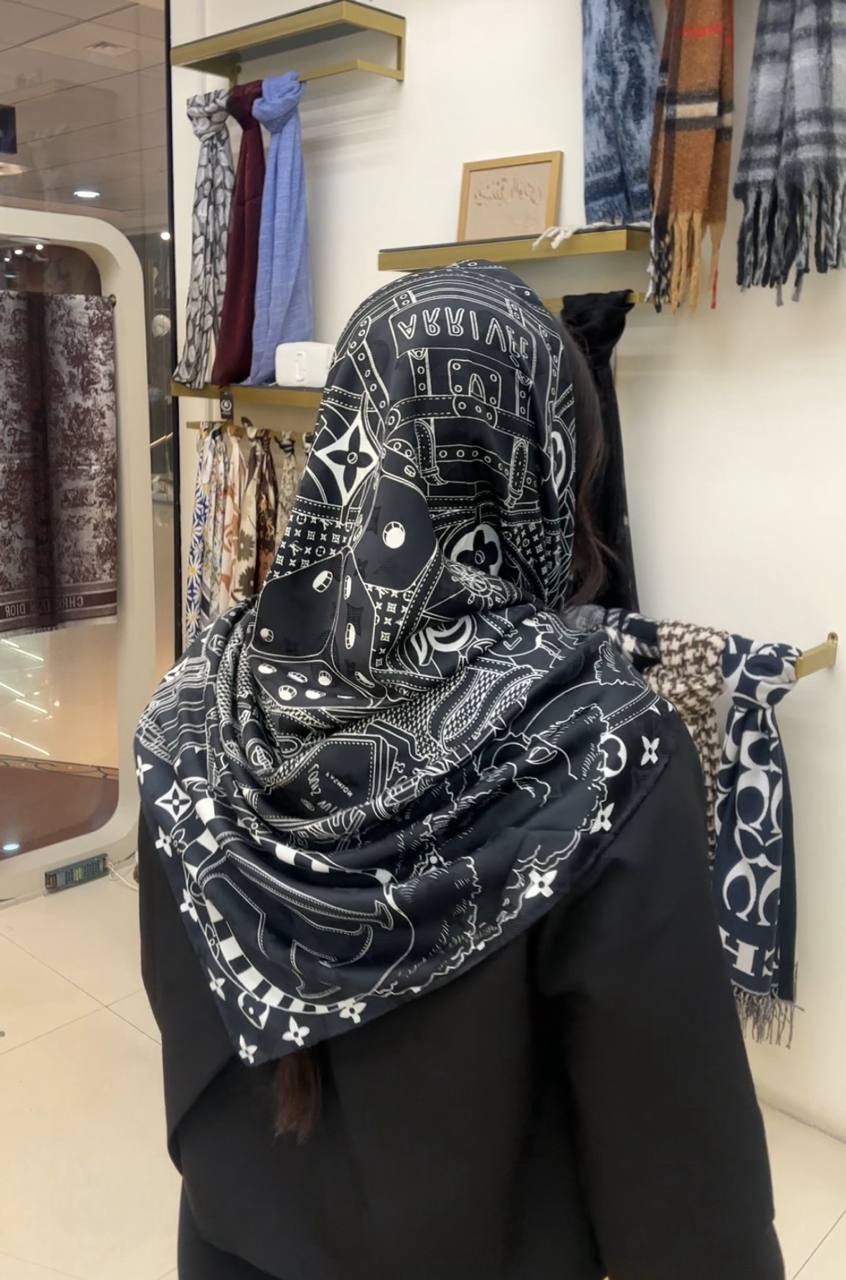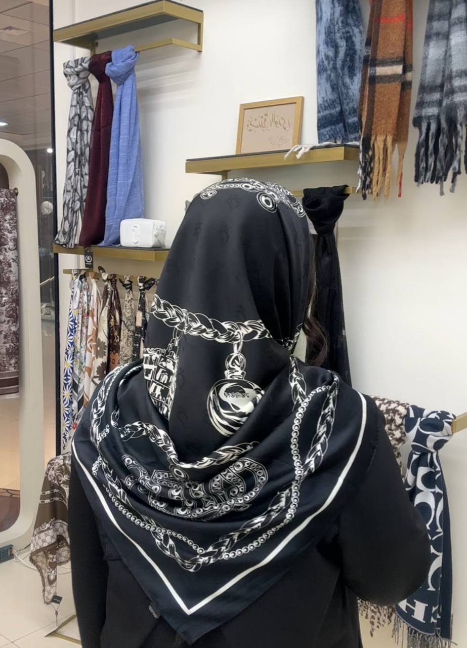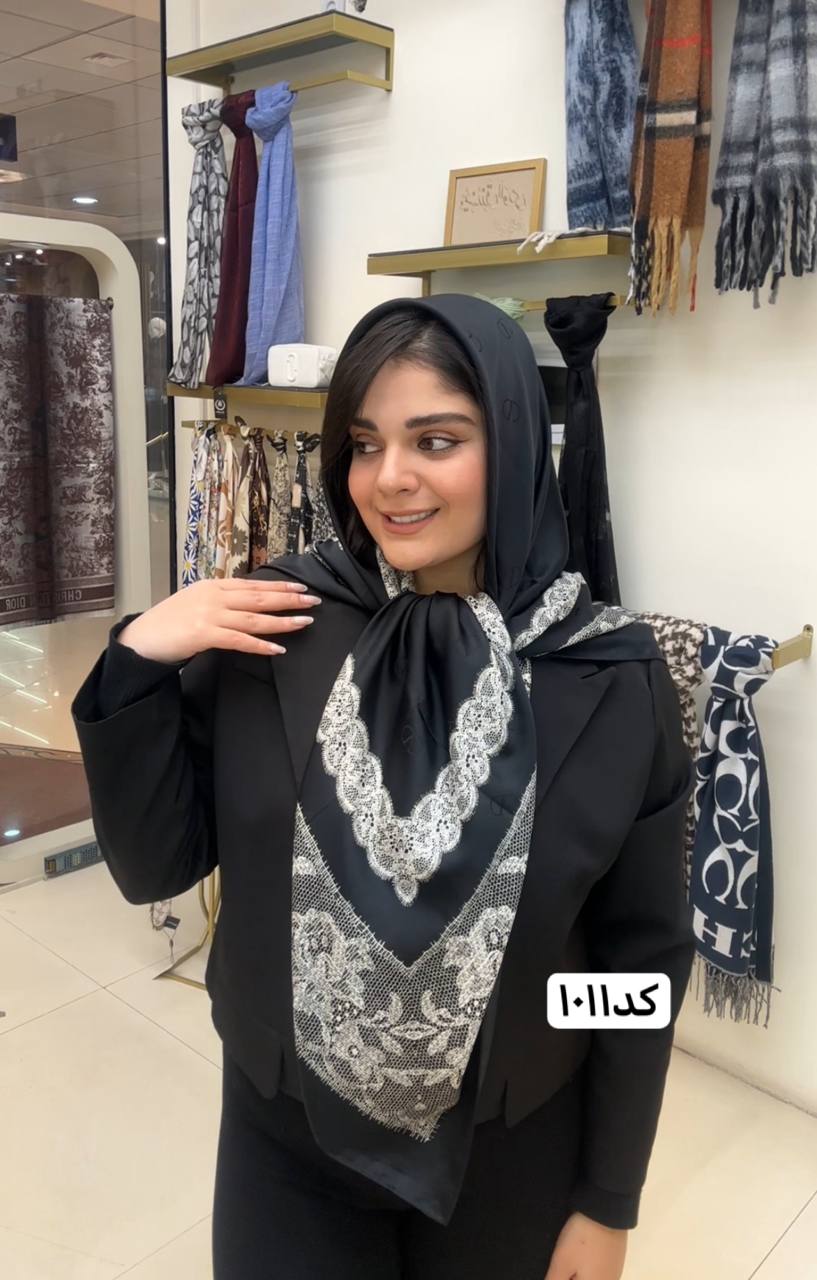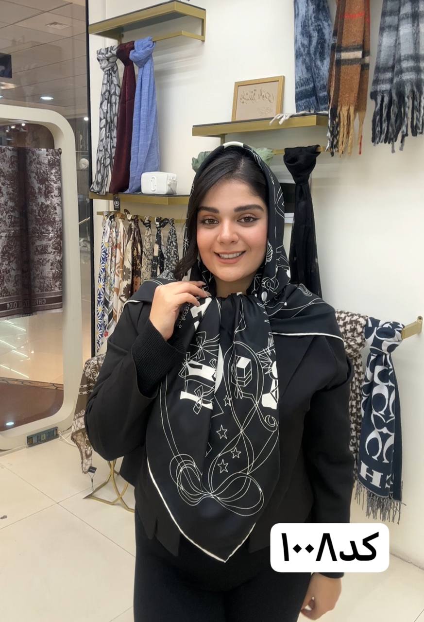 روسری ابریشم ژاکارد سایزه 140 در 140 طرح سفید مشکی