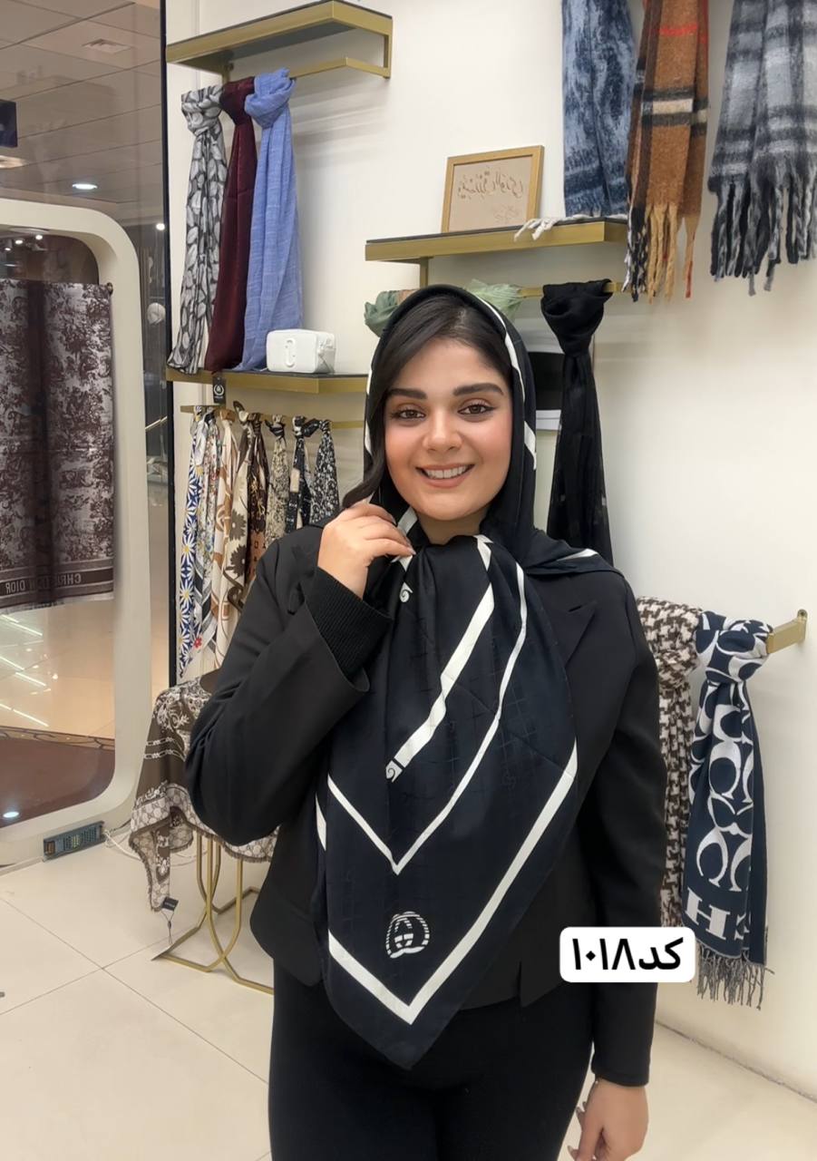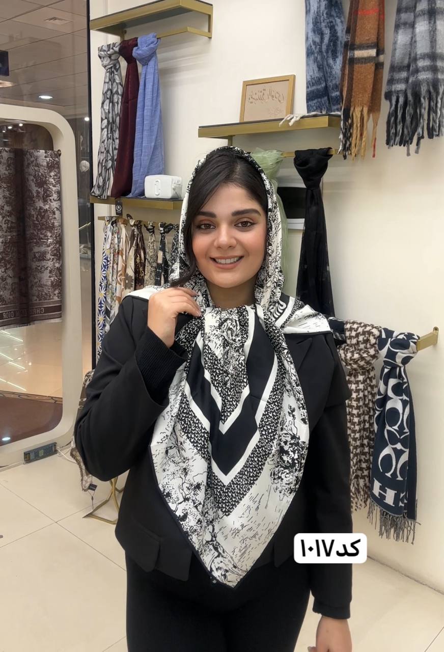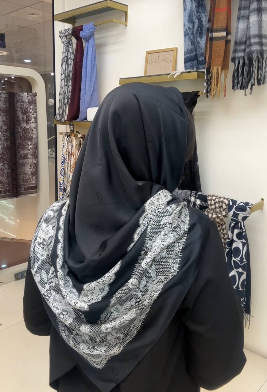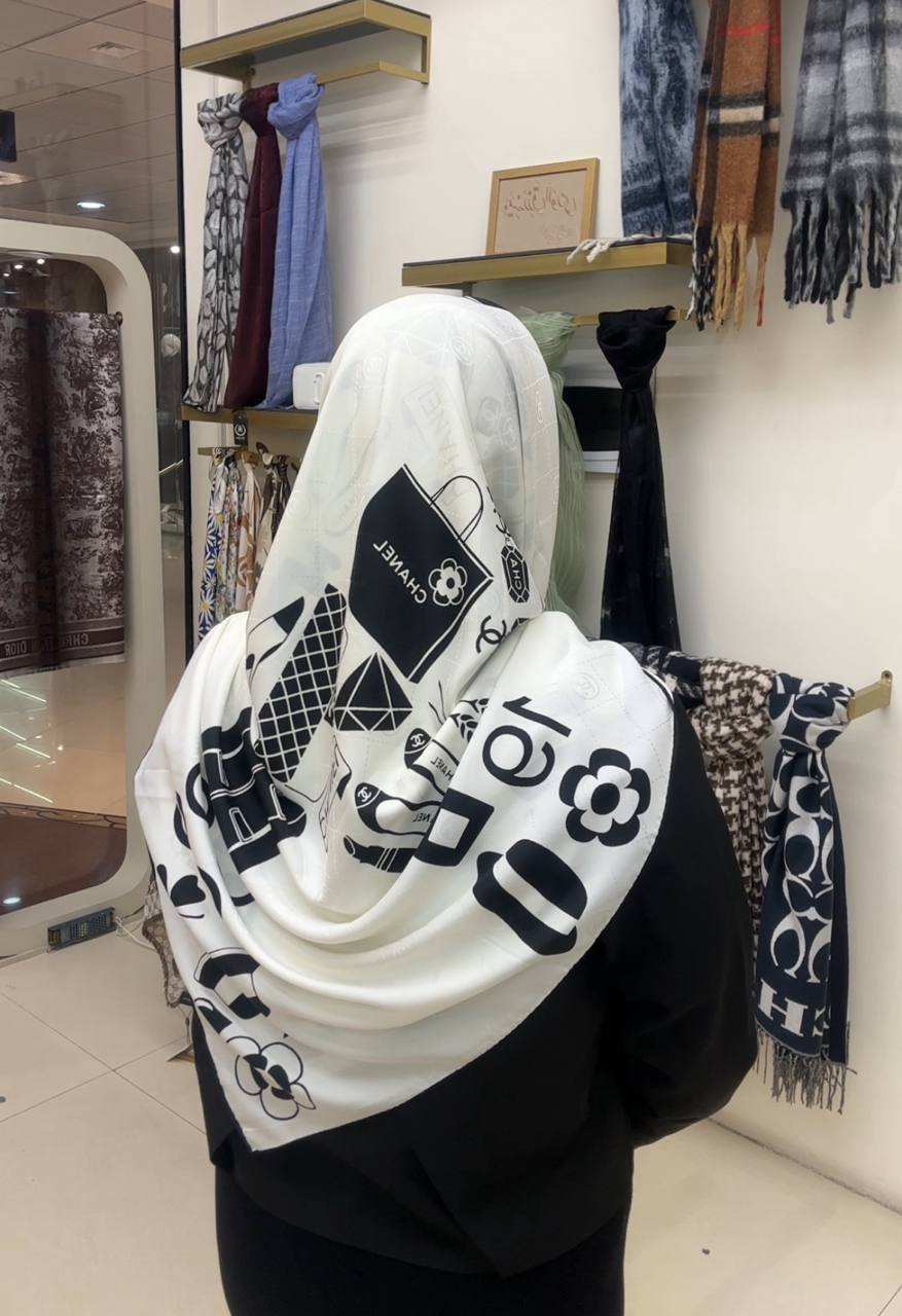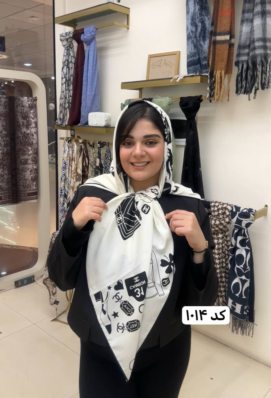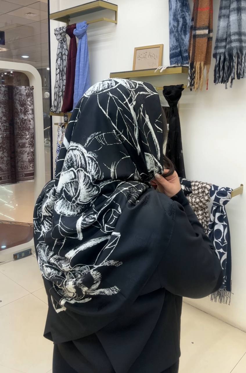 روسری ابریشم ژاکارد سایزه 140 در 140 طرح سفید مشکی