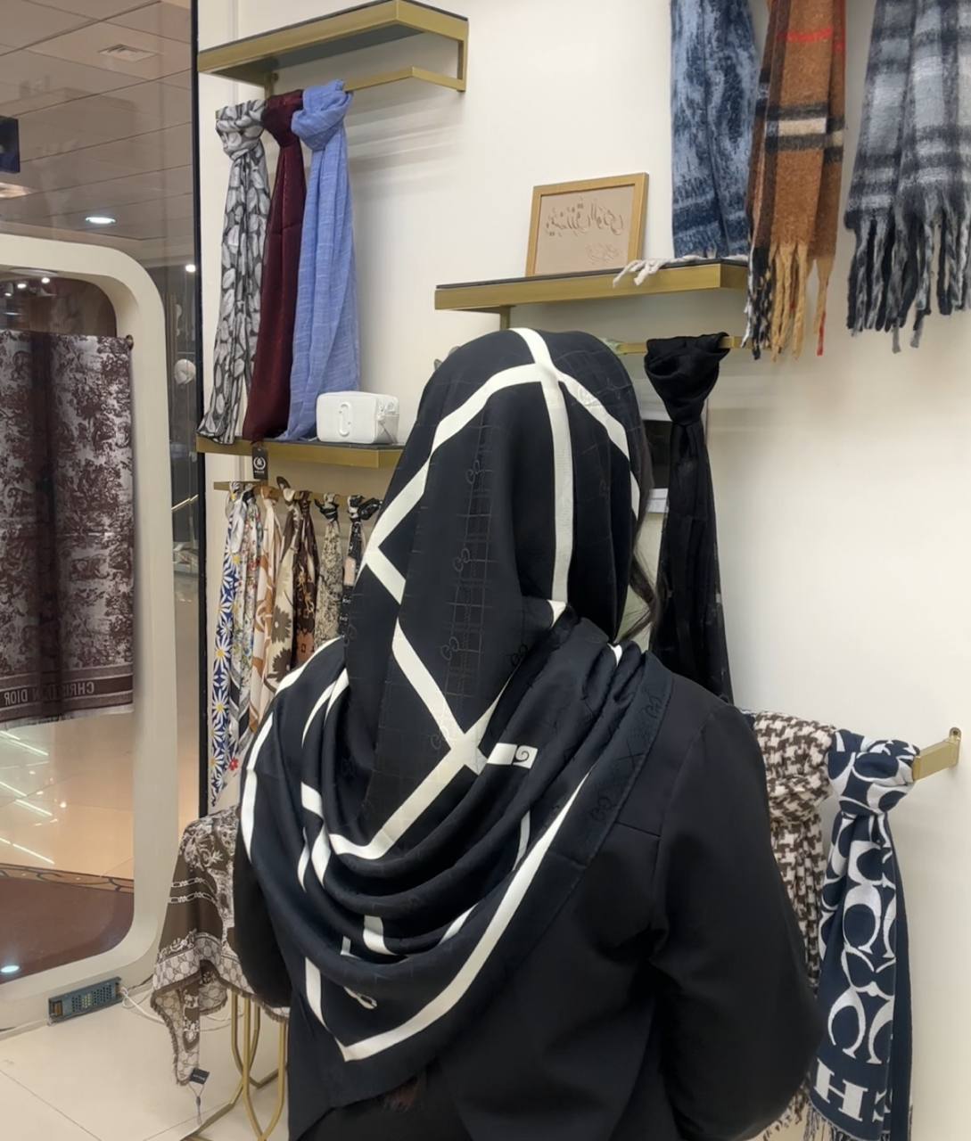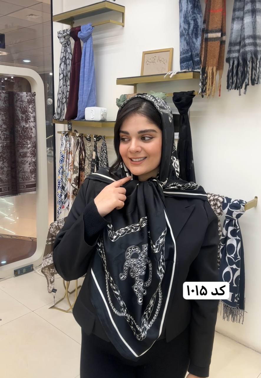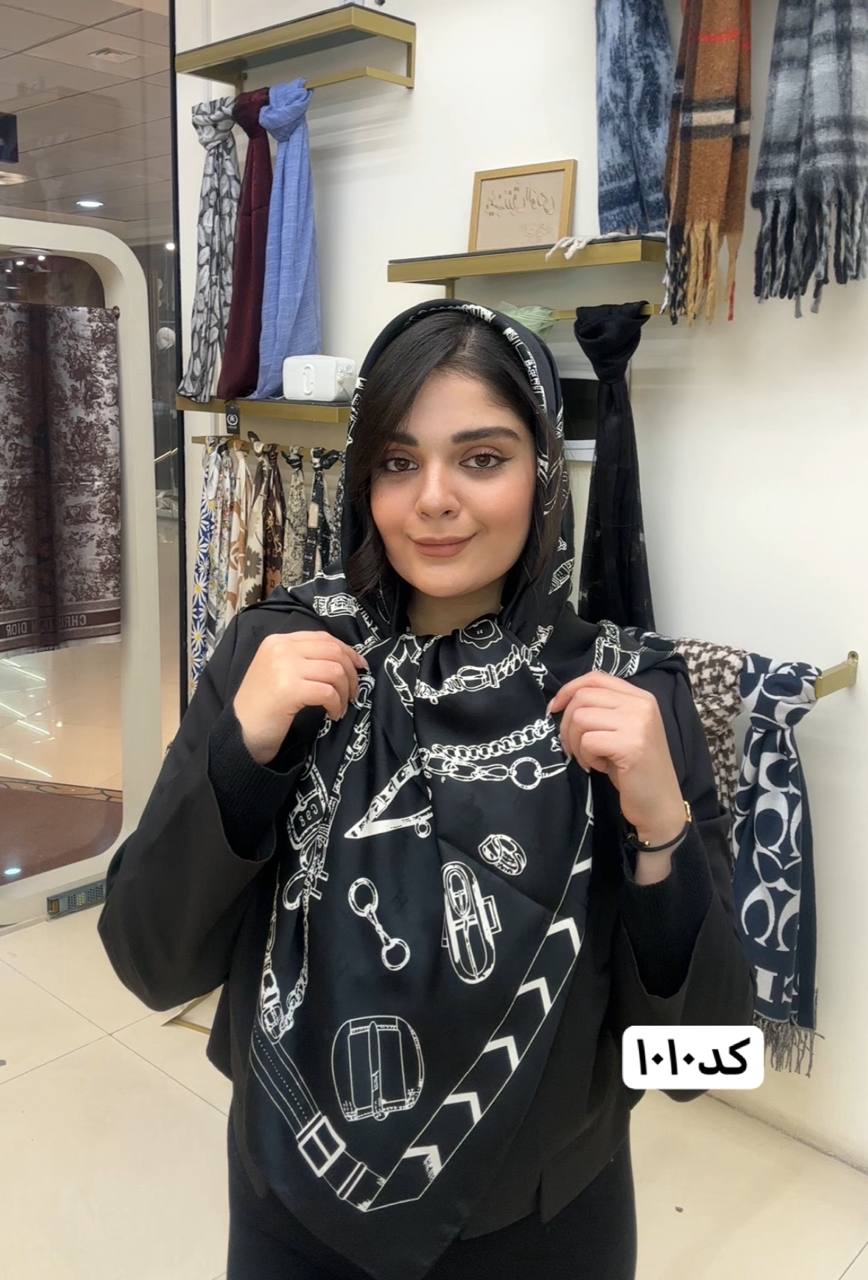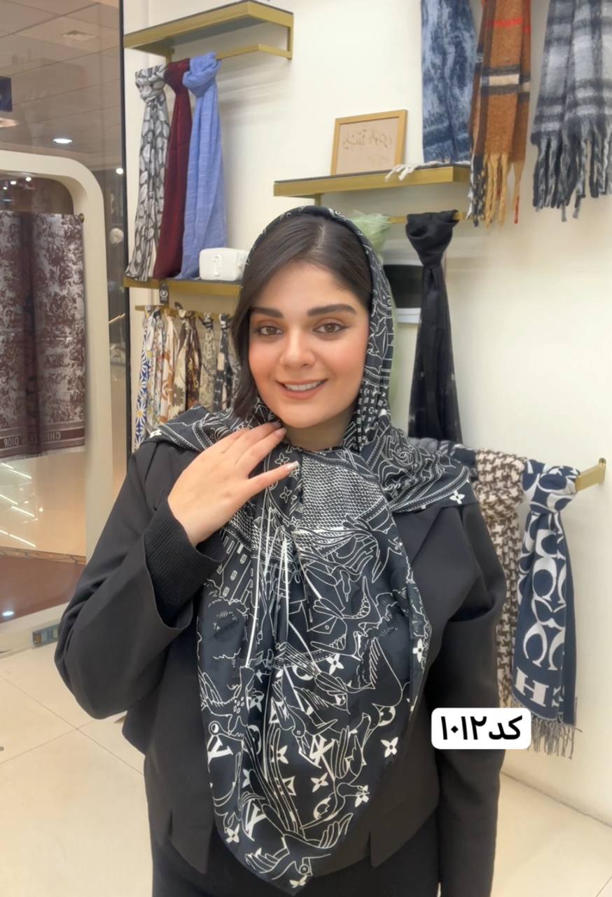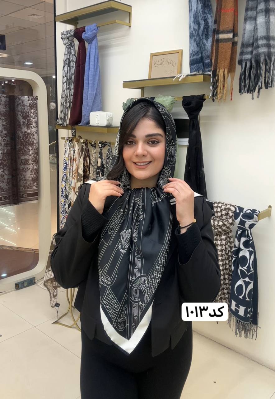 روسری ابریشم ژاکارد سایزه 140 در 140 طرح سفید مشکی